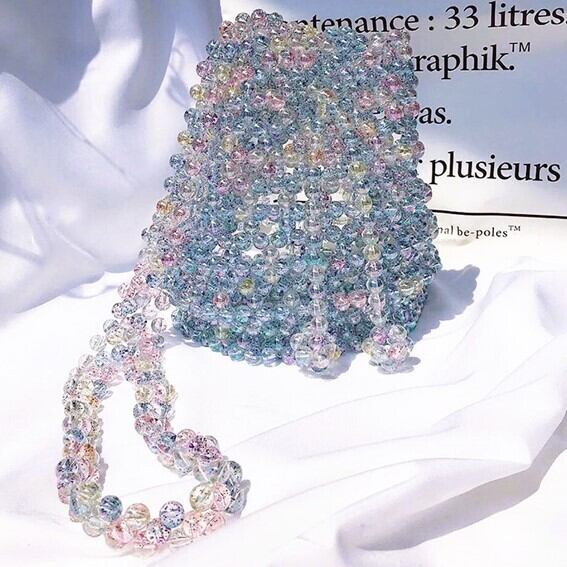 オーロラのシャボン玉の中に色付きのラメがちりばめられたようなかわいい色合いのビーズです♪
