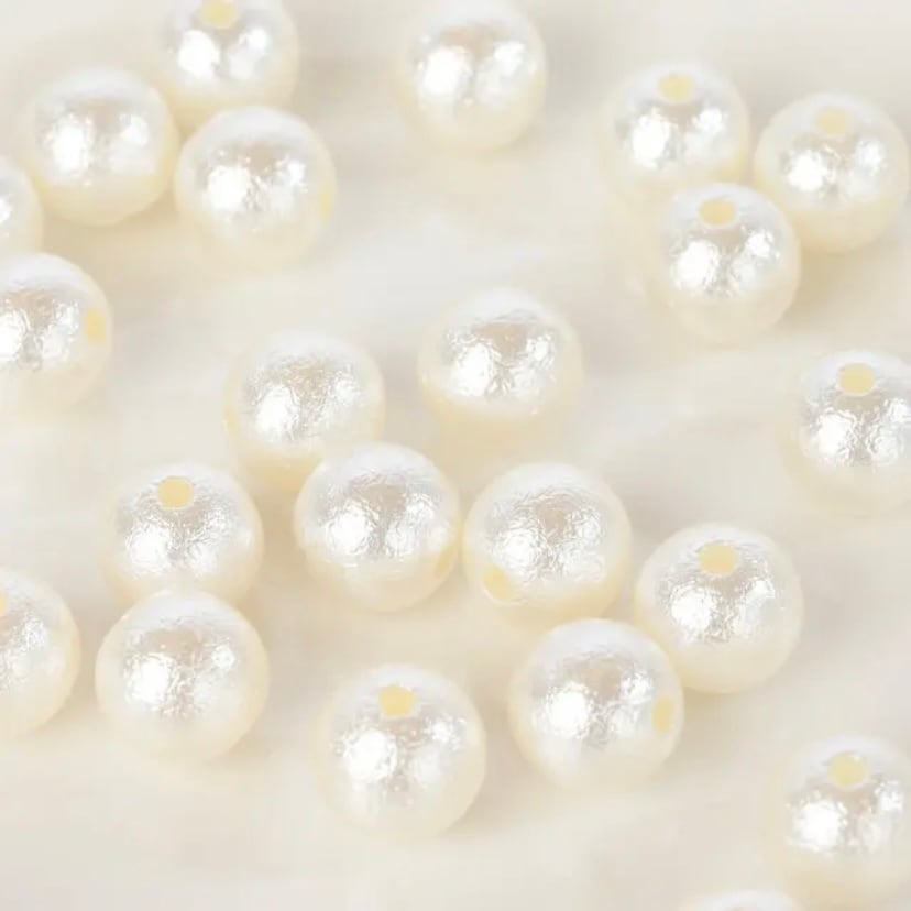 コットンパール風の樹脂製の人工真珠です。別名エアパールともいわれていて、その名の通りとても軽い着け心地です。