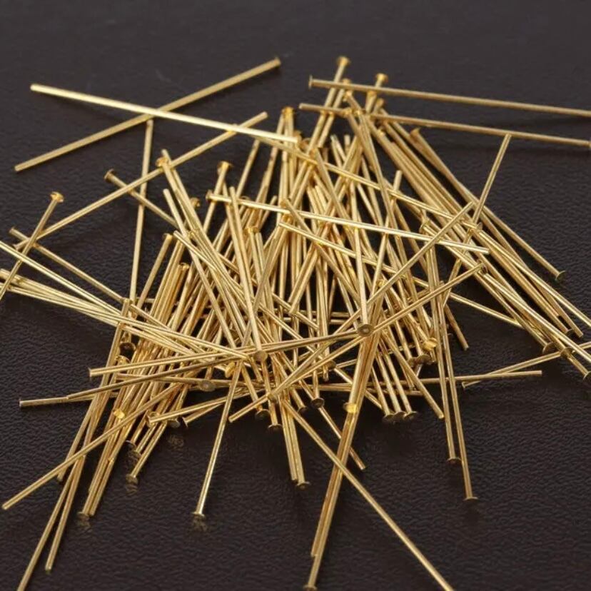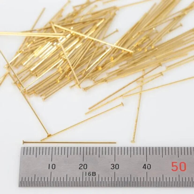Tピン ゴールド 100本 長さ:30mm 直径:約0.6mm ハンドメイドアクセサリー製作には欠かせないTピンです。 人気のゴールド色☆ お好みのパーツを通して、あなただけのオリジナルアクセサリーをお作り頂けます。