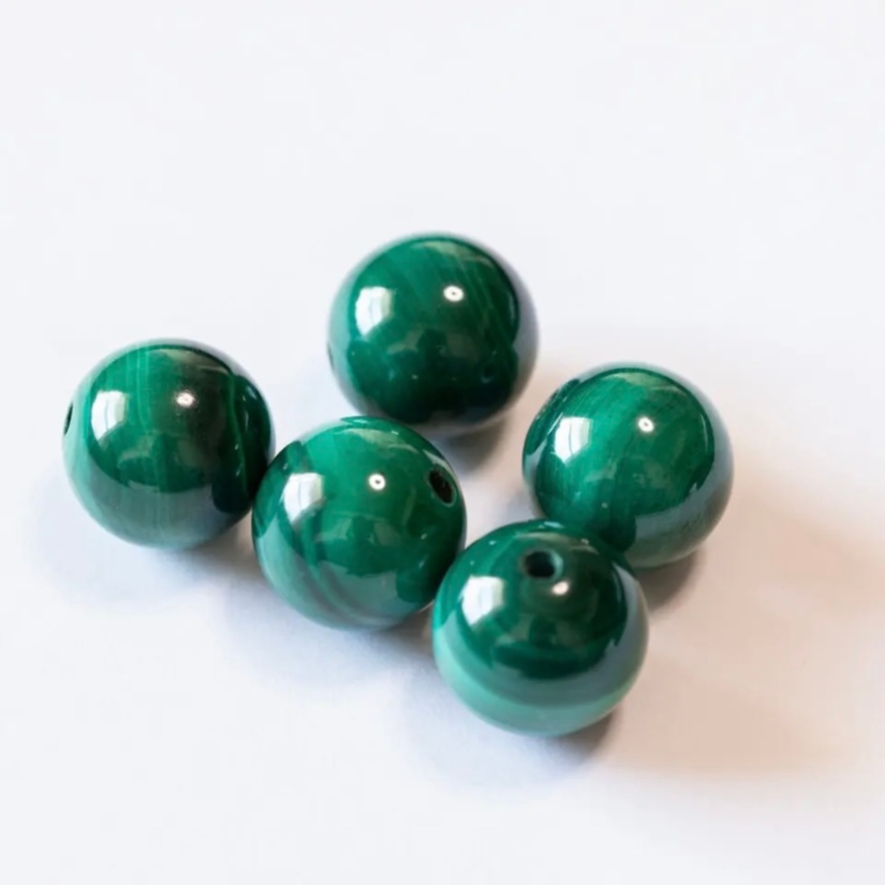 上質 高級マラカイト(孔雀石) グレードマラカイト グリーン 深緑 10mm 5粒