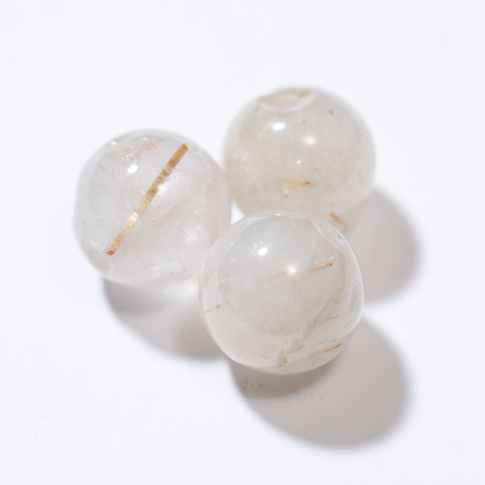 AAA 天然 ルチルクオーツ 10mm 3個 両穴貫通 ブレスレット ピアス ネックレスに