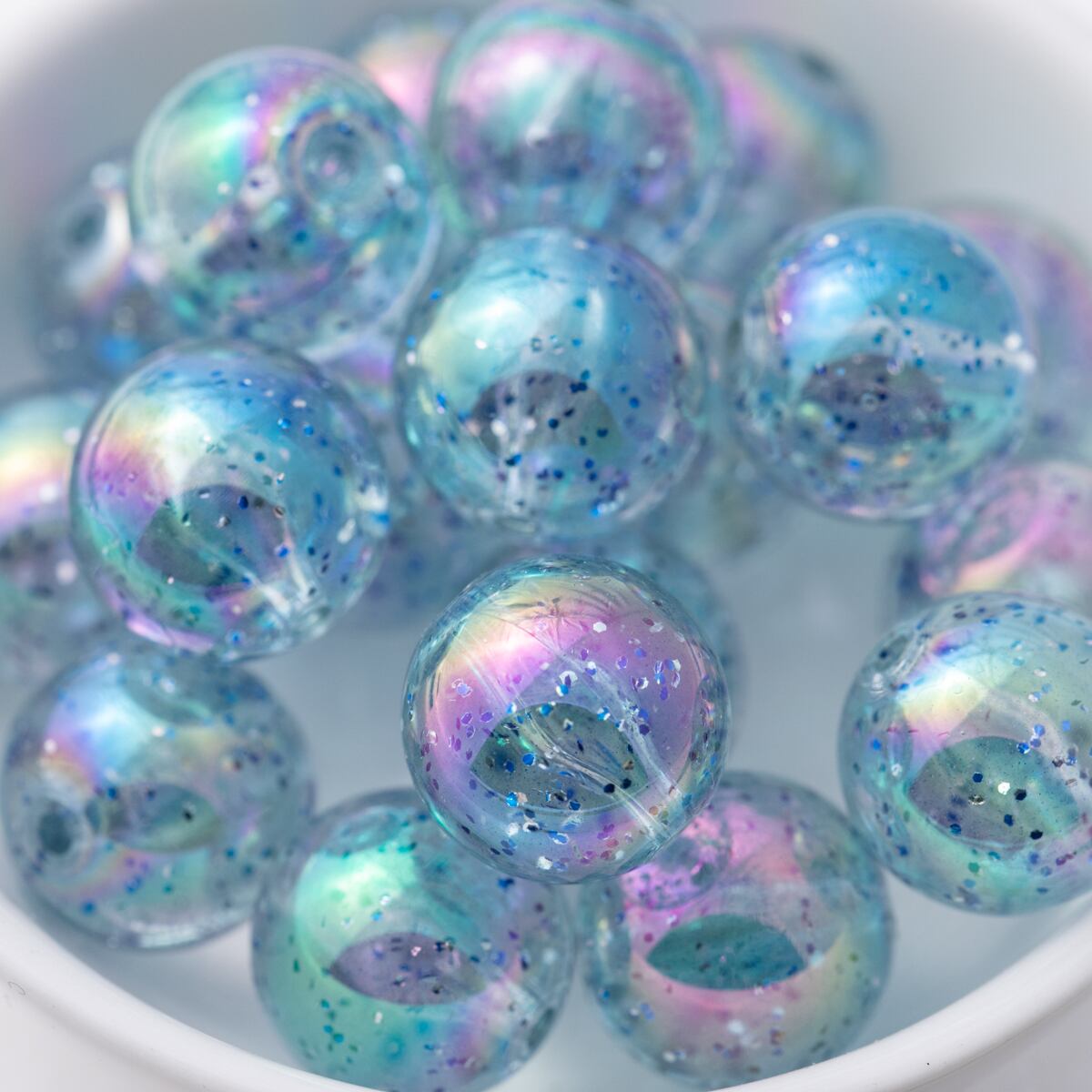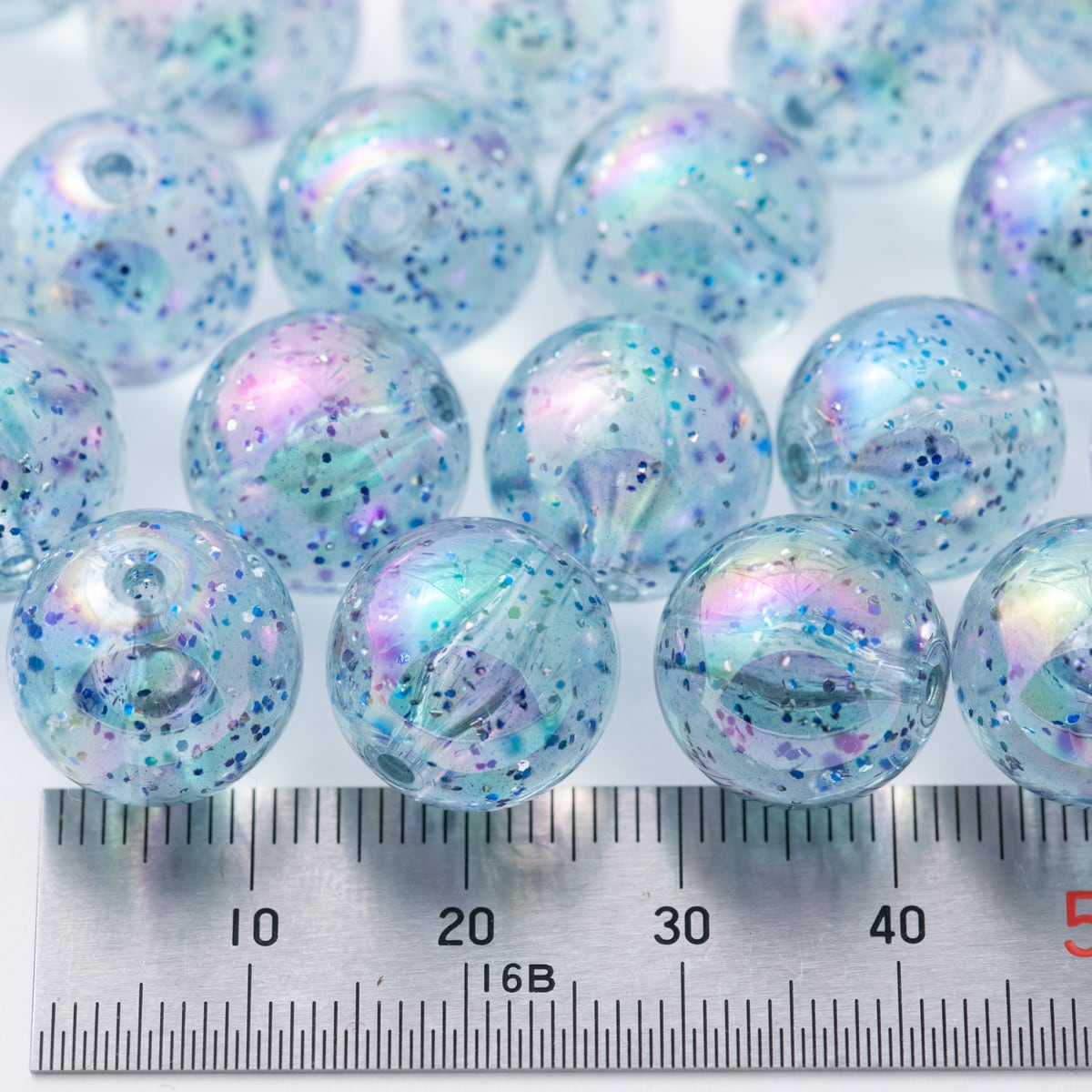 大粒 14mm ビー玉風 ビーズパーツ ラメ入り 【パールクリエイト】 ブルーラメ 30個 光沢艶玉 オーロラ加工 穴2mm 丸玉 アクリルビーズ アクセサリー ハンドメイド パーツ B132 | パールクリエイト