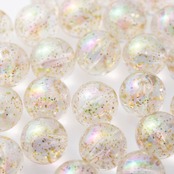大粒ラメビーズ 14mm(穴の直径は約2mm) 両穴貫通タイプ ビー玉風のクリアビーズです。 光の加減で輝くオーロラ艶玉加工