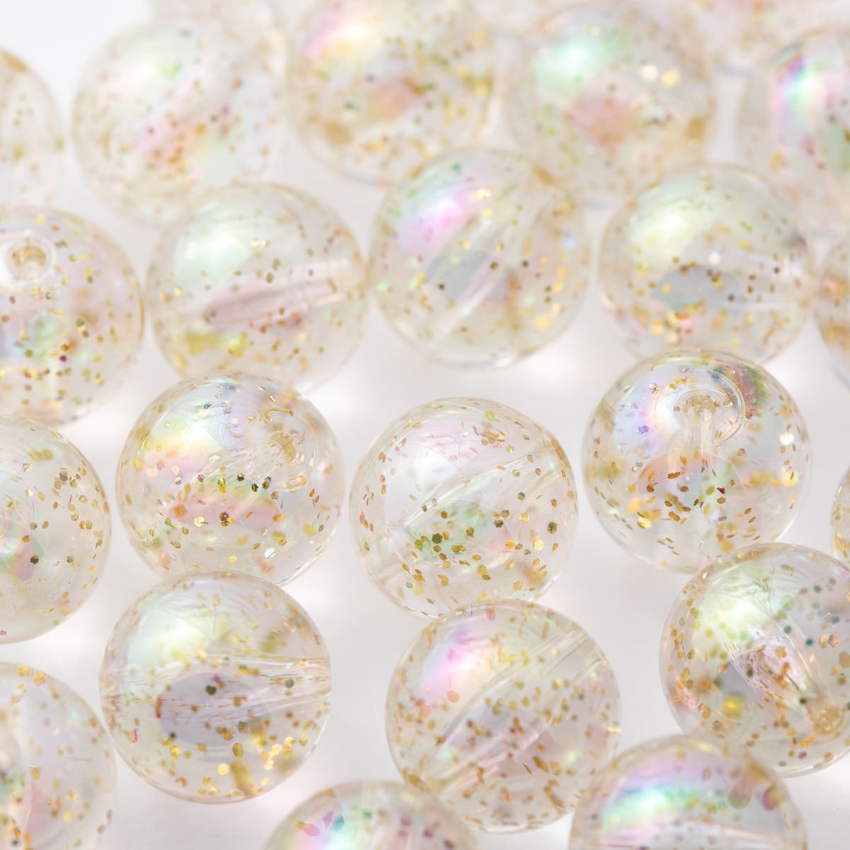 大粒 14mm ビー玉風 ビーズパーツ ラメ入り 【パールクリエイト】 ゴールドラメ 30個 光沢艶玉 オーロラ加工 穴2mm 丸玉 アクリルビーズ アクセサリー ハンドメイド パーツ B130 | パールクリエイト