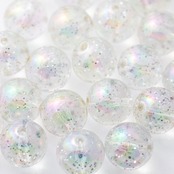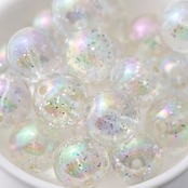 大粒 14mm ビー玉風 ビーズパーツ ラメ入り 【パールクリエイト】 シルバーラメ 30個 光沢艶玉 オーロラ加工 穴2mm 丸玉 アクリルビーズ アクセサリー ハンドメイド パーツ B129 | パールクリエイト