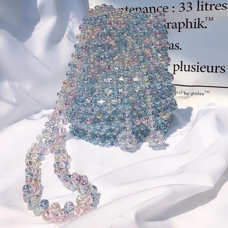 オーロラのシャボン玉の中に色付きのラメがちりばめられたようなかわいい色合いのビーズです♪