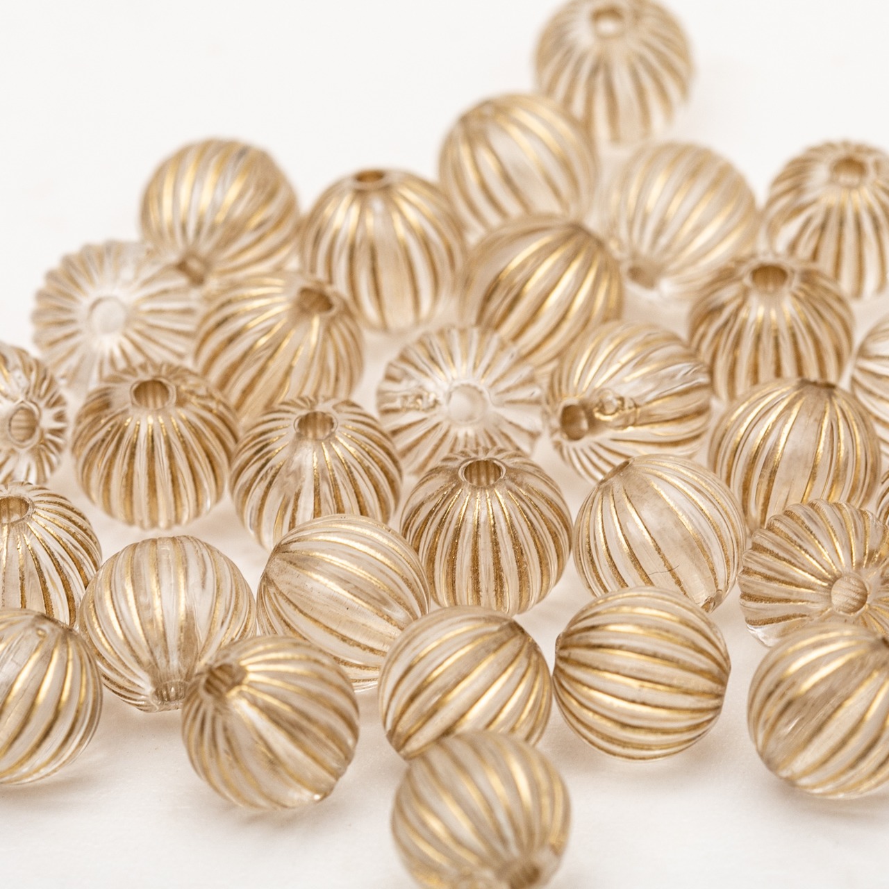 ・くっきりと入ったゴールドラインが特徴のかぼちゃのように筋が入ったレトロなボールビーズです