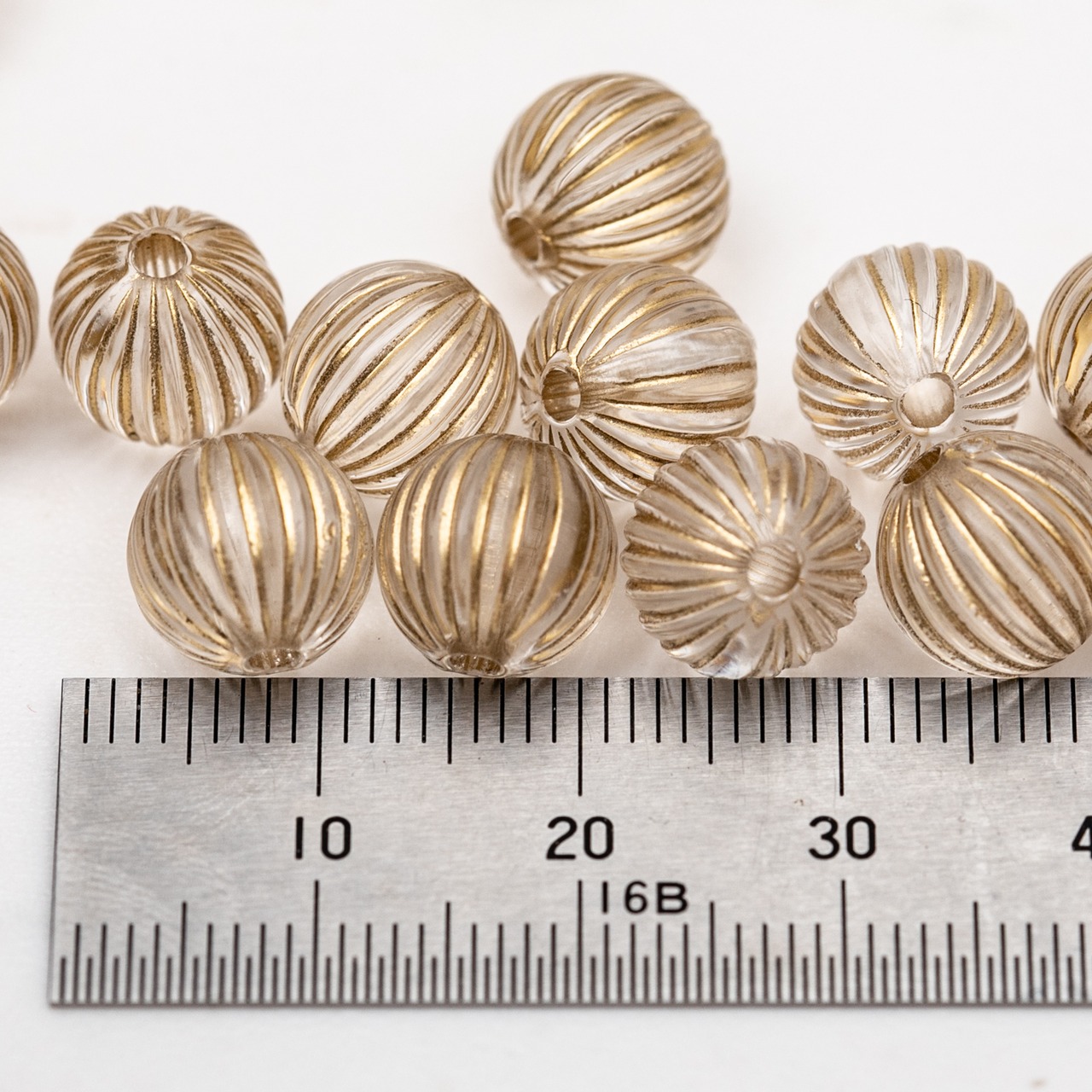 アクリルビーズ ビーズパーツ アンティーク調 彫り ゴールドライン 筋 かぼちゃ メロン ボールビーズ 両穴 アンティークビーズ アジアンビーズ レトロビーズ 10mm 10ミリ