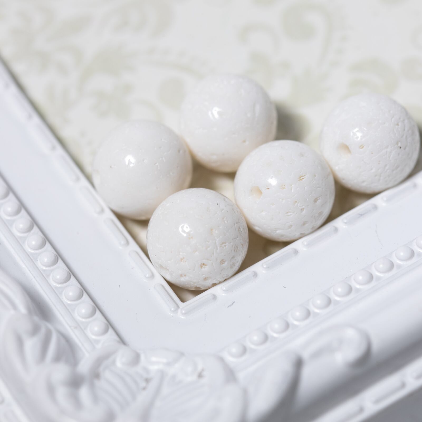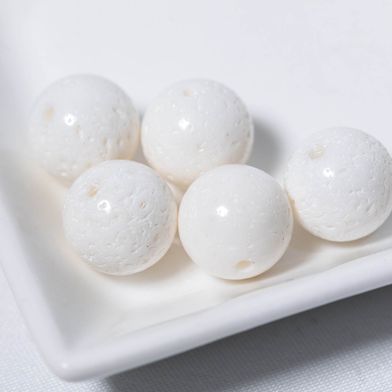 ・天然のホワイトコーラル(白珊瑚)です。珊瑚そのものを丸玉に加工しています。